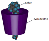 最小送達系 CycloXome™は、シクロデクストリン内に封入された活性分子です。この活性分子は、シリンダー状のシクロデクストリンの腔の中に強力に結合しており、酸化及び枯渇から守られています。 シクロデクストリンの外側表面は陽性の電荷を持つため、陰性に電荷された皮膚上に強力に定着します。 しかし、電荷されることにより、シクロデクストリンは皮膚バリアを通過することができません。